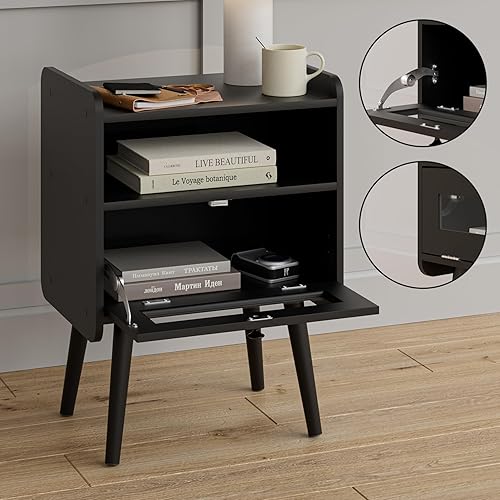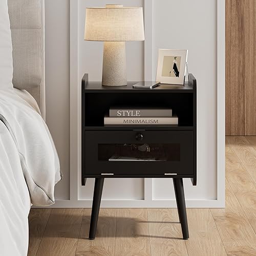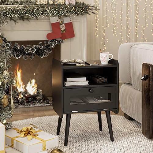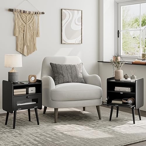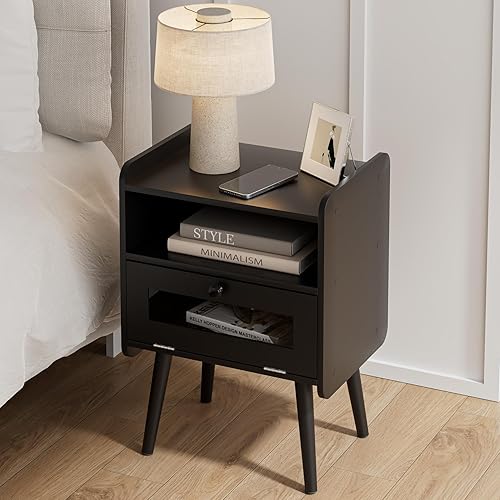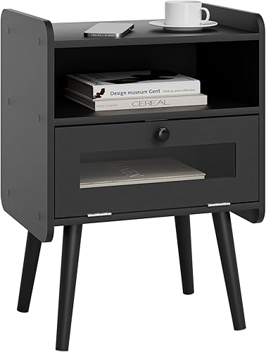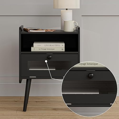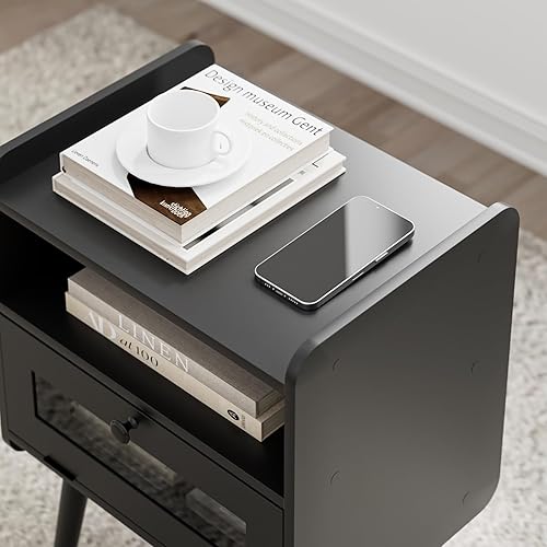HEYZOEY Table de Chevet Table d'appoint Noire Table de Chevet Moderne Table d'appoint Table de Chevet Chambre tiroir Table d'appoint Chambre, Salon, Bureau, Noir