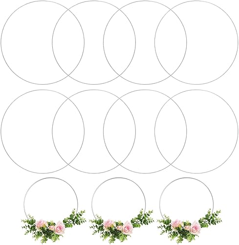 WeddHuis Anneaux Métalliques pour Bricolage, 8 pièces, Couronne, Attrapeur de Rêves, Cercles Floraux en Métal pour Floral DIY, Cercle Metal, Couronne de Mariage, Guirlande de Noël (15 cm) (Argent)