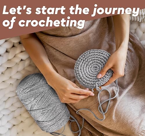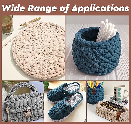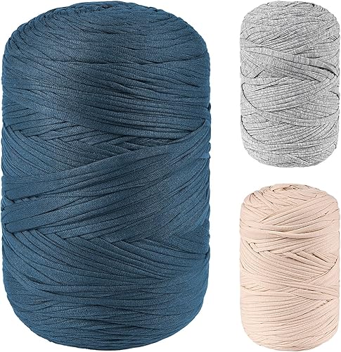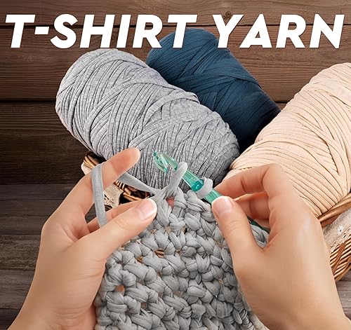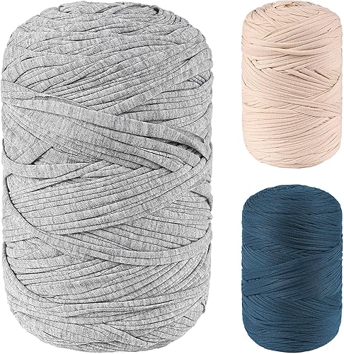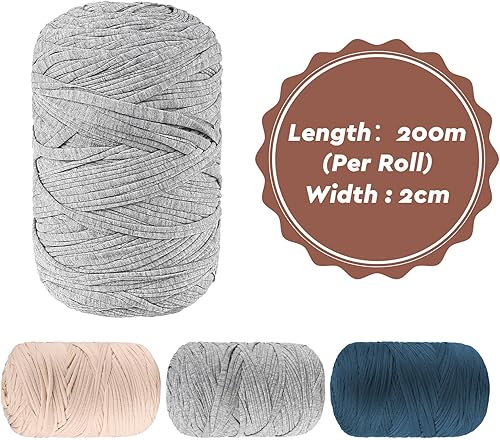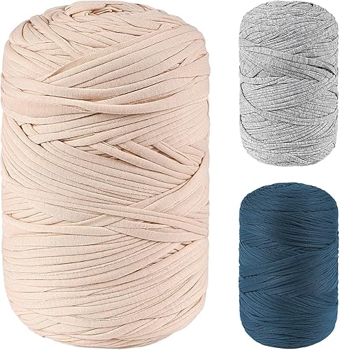 ilauke T-Shirt Yarn Beige, 600g/200m Fil Crochet, 2cm Fil à Tricoter Doux et Larges Fil Épais à Crocheter ou à Tricoter pour Sacs, Couvertures, Chapeaux, Jouets, Chaussures, Bricolage Artisanat
