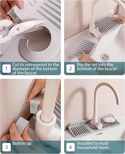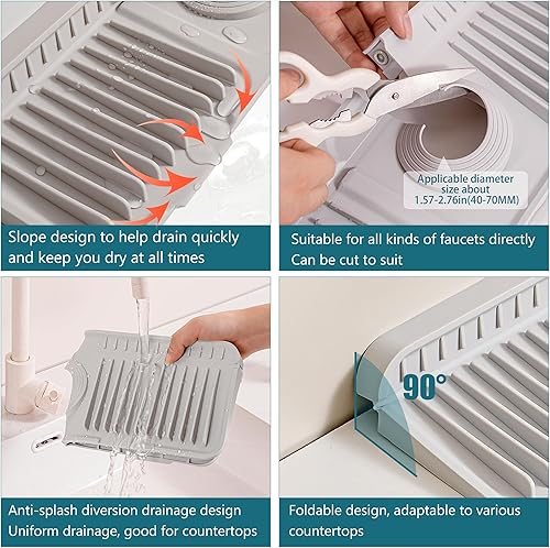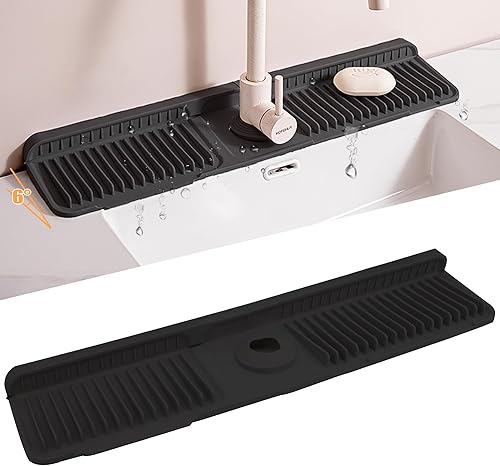 Volminex Tapis de protection anti-éclaboussures pour évier de cuisine en forme de pente à 6°, tapis de robinet pliable, plateau récupérateur d'égouttement, tapis de drainage autour du robinet pour