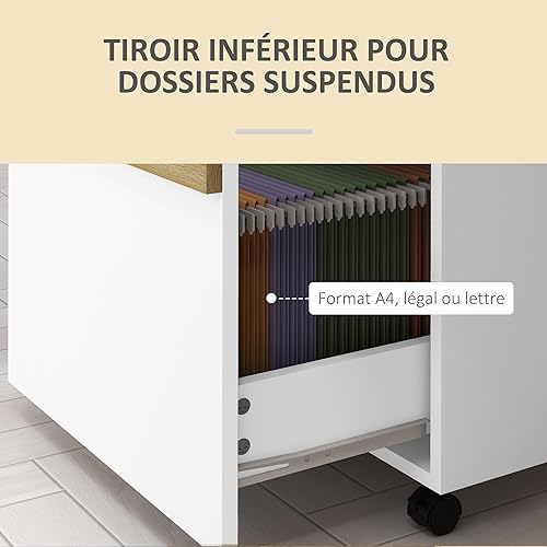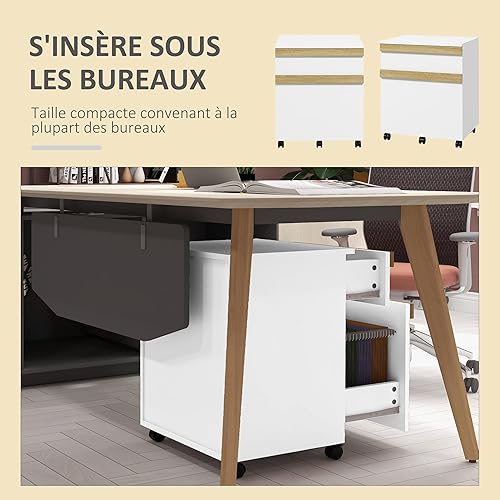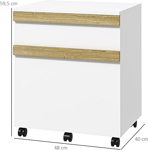Vinsetto Caisson de Bureau à roulettes Meuble de Rangement Mobile avec 2 tiroirs coulissants trieur à dossiers 48 x 40 x 59,5 cm Blanc