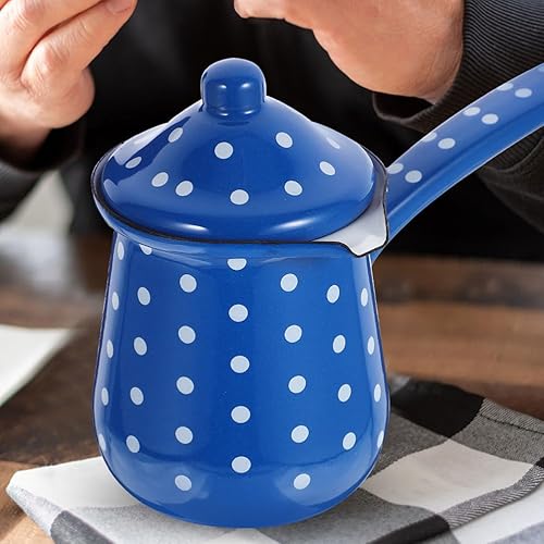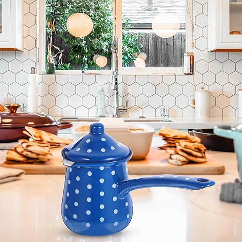 RYQZOVKX Cafetière Turque – Bouilloire à café en émail de 700 ML for café Turc Authentique, cafetière rétro avec Longue poignée