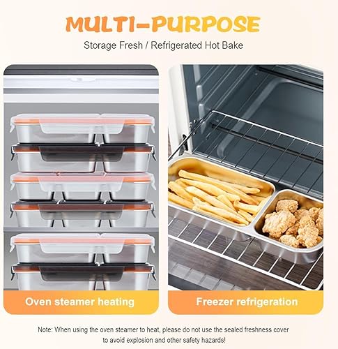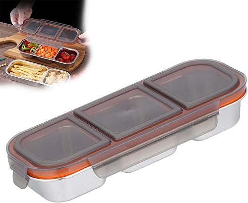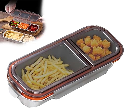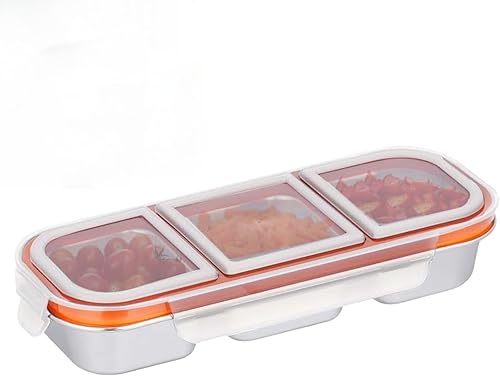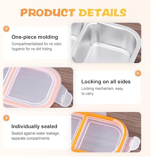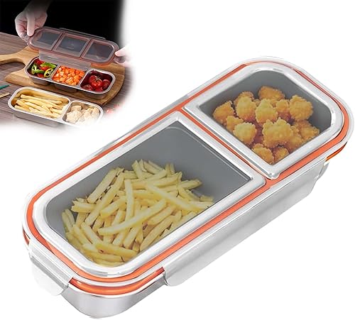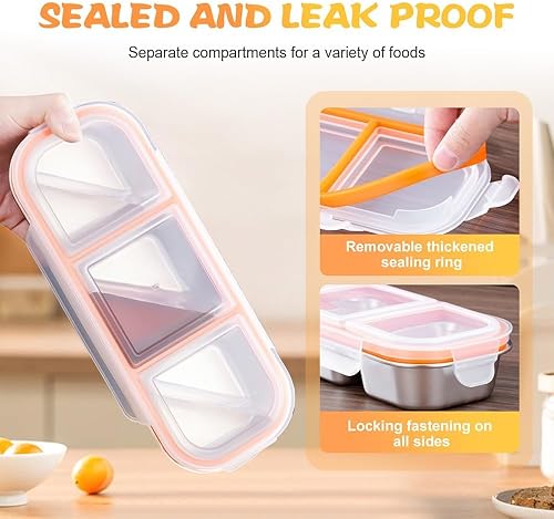 Lot de 3 boîtes alimentaires étanches en acier inoxydable à 2 compartiments – Couvercles magnétiques pour sacs de sport/pique-nique/déjeuner de bureau, boîte à bento en acier 304 (3 carrés blancs)