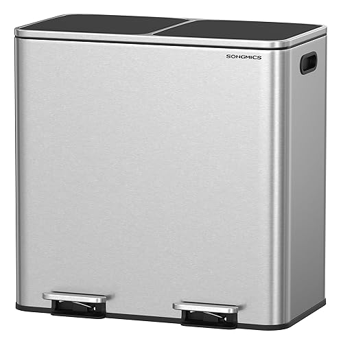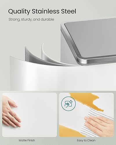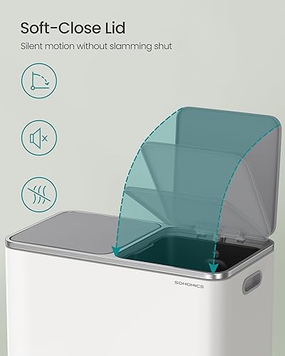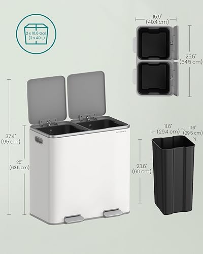 SONGMICS Poubelle de cuisine, 2 x 40 L, avec 15 sacs poubelles, 2 compartiments, seaux intérieurs en plastique et couvercles à charnière, hermétique, blanc et gris ULTB730W80