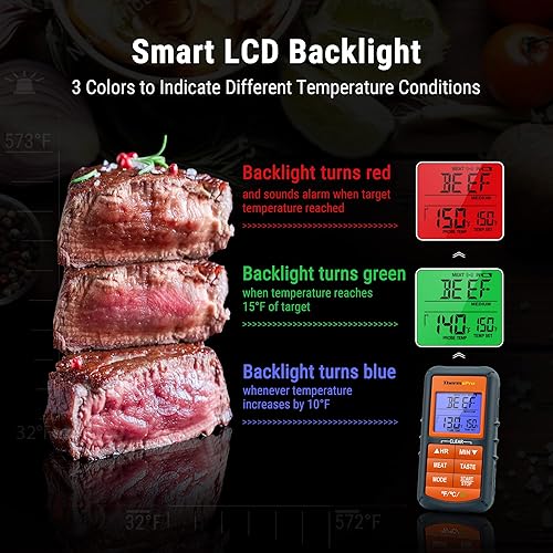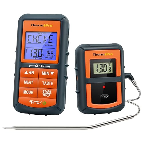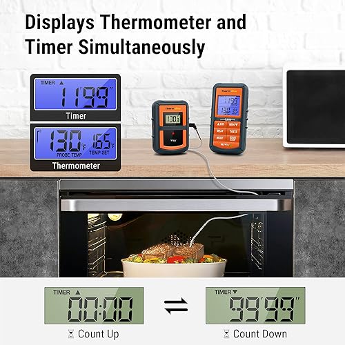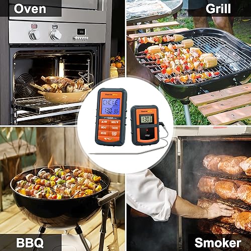 ThermoPro TP07 Thermomètre de Cuisson Numérique Sans Fil et À Distance Thermomètre pour Viande Dinde Grill Four Cuisine Fumoir Barbecue avec Donde, Portée de 90M