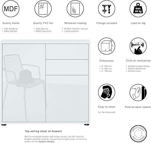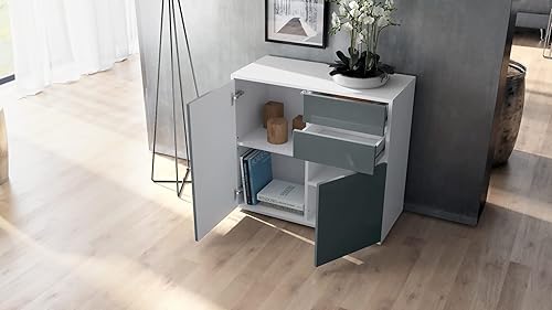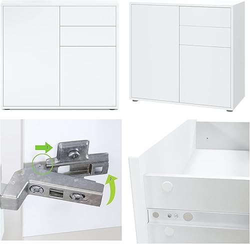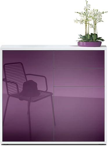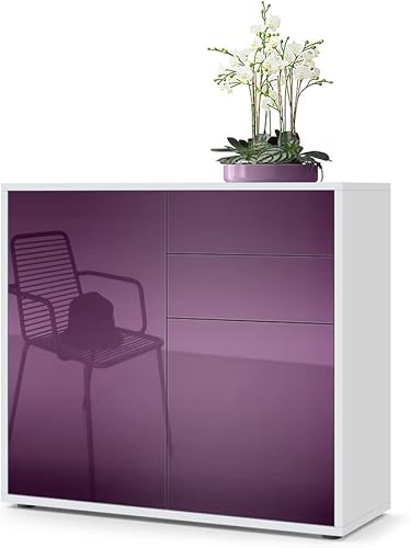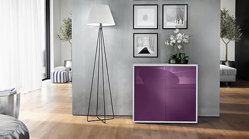 Vladon Buffet Ben, Commode avec 2 Portes et 2 tiroirs, Blanc Mat/Mûre Haute Brillance (79 x 74 x 36 cm)