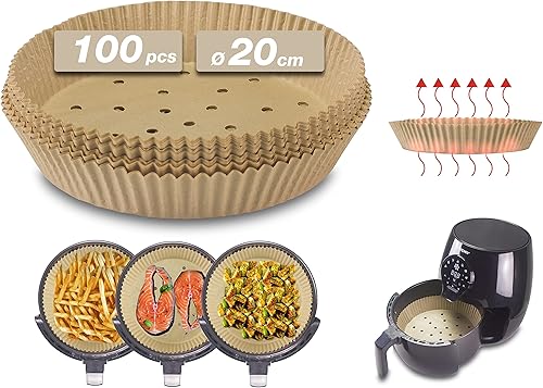 BEPER C103ACC001 Papier de cuisson pour friteuse à air, 100 pièces [20 cm], Papier de perforé pour friteuse à air, Antiadhésif, Oléofuge