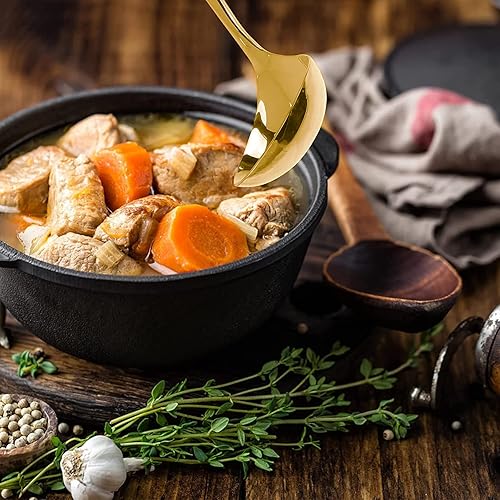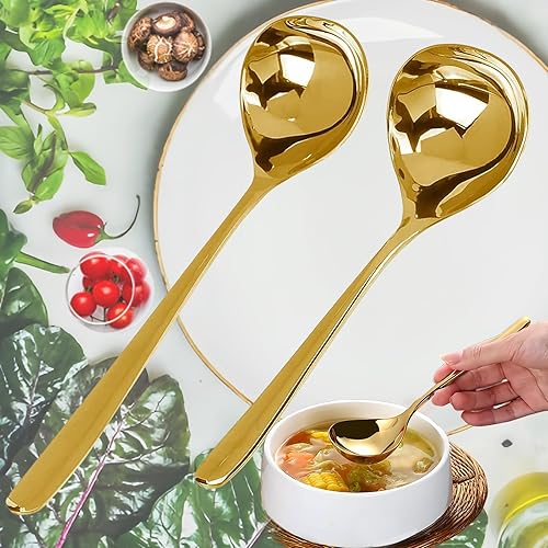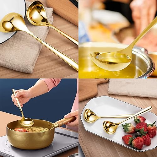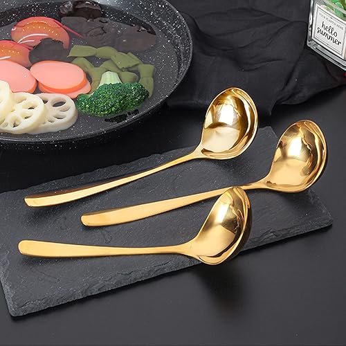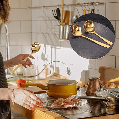 Brateuanoii 2 Pièces Grande Cuillère à Soupe Dorée, Louches à Sauce En Acier Inoxydable, Cuillères Service, Louches à Long Manche, Louche à Soupe Polissage Miroir, 19,3cm/16,3cm, Va Au Lave-Vaisselle