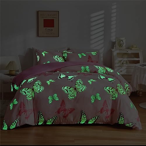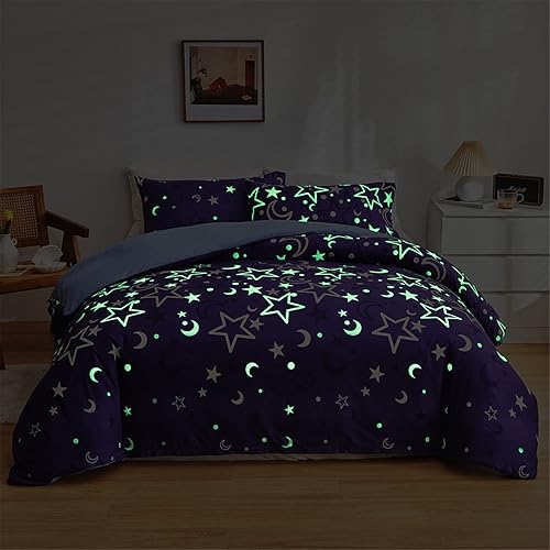 Odot Housse de Couette Phosphorescente, Parure de Lit Adulte Enfant avec Housses de Couettes et Taies D'oreillers, Ensemble de Literie (Etoiles & Lune,220x240cm-3 Pieces)