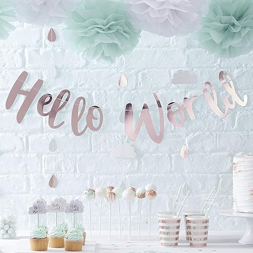 Ginger Ray- Assiettes en Papier Unisexe pour fête prénatale Lot de 8, Hello World Mint and Rose Gold, Vert