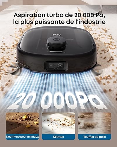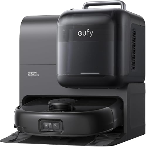 eufy Robot aspirateur Omni E28, Nettoyeur en Profondeur Portable, système HydroJet, Aspiration Turbo de 20 000 Pa, brosses démêlantes DuoSpiral, Bras CornerRover, Station Tout-en-Un