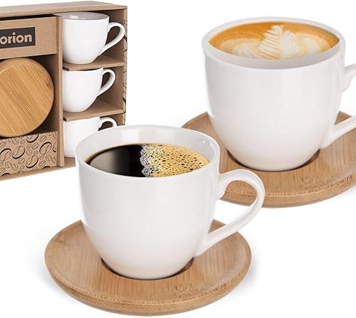 WHITELINE Lot de 6 tasses à café en porcelaine pour 6 personnes avec soucoupes 100 ml Blanc