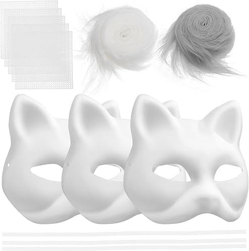 DECHOUS Therian Kit pour fabriquer des masques de chat DIY avec fourrure synthétique en peluche et maille pour les yeux Masques de chat pour déguisements fête d'Halloween 3
