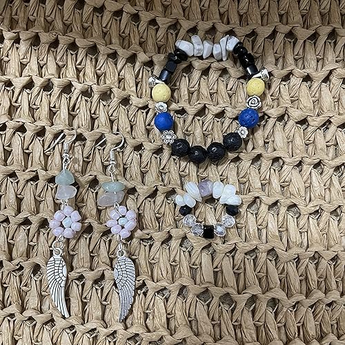 Queta Kit de fabrication de bijoux en pierres précieuses naturelles irrégulières avec fil à bijoux, pendentifs, bracelets et outils de fabrication (combinaison A)