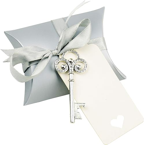 50 pcs Faveur De Mariage Cadeau Souvenir Ensemble Oreiller Boîte De Bonbons Squelette Vintage Porte-Bouteille Escortes Merci Balise Français Ruban (Argent Antique)