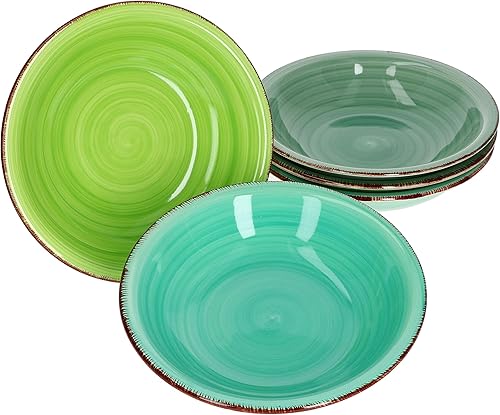 MamboCat Green Set 6 assiettes Assiettes à soupe vertes Vaisselle robuste en faïence verte pour 6 personnes Set 6 assiettes creuses Avec un décor tourbillonnant moderne de style campagnard
