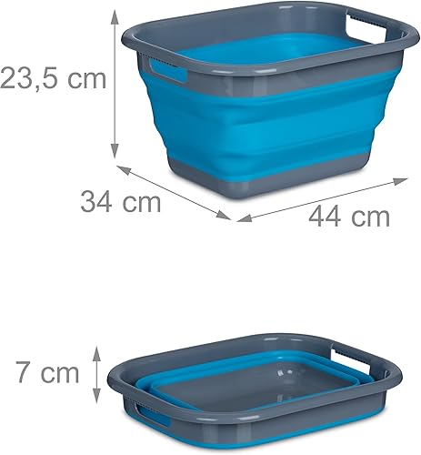 Relaxdays Panier à Linge, Pliable, Volume : 15 litres, en Plastique, Peu encombrant, avec poignées, Bleu et Gris