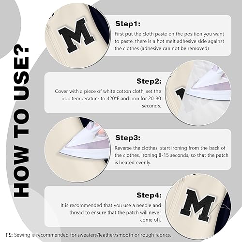 QianSiLi Écussons brodés thermocollants en chenille de 16,5 cm pour vêtements, veste, sweat à capuche, université (blanc, F)