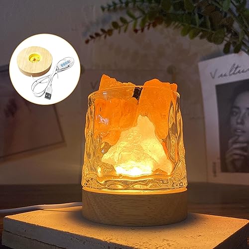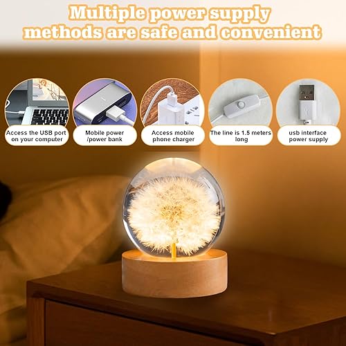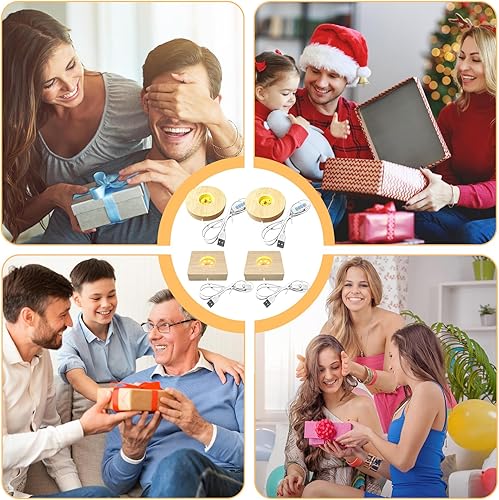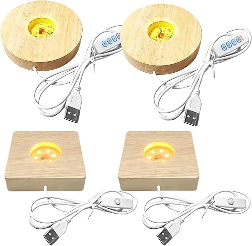 Lot de 4 socles LED en bois - 3 couleurs - Éclairage en bois réglable - Rond + rectangulaire - Support USB pour boules en cristal, verre, bijoux, acrylique et résine