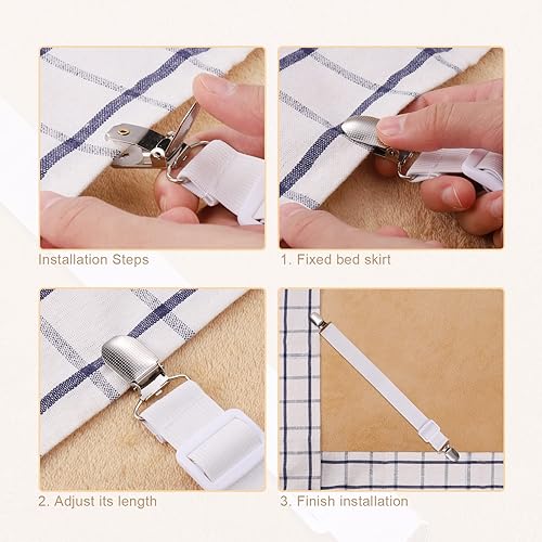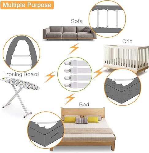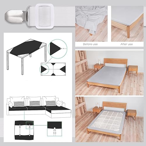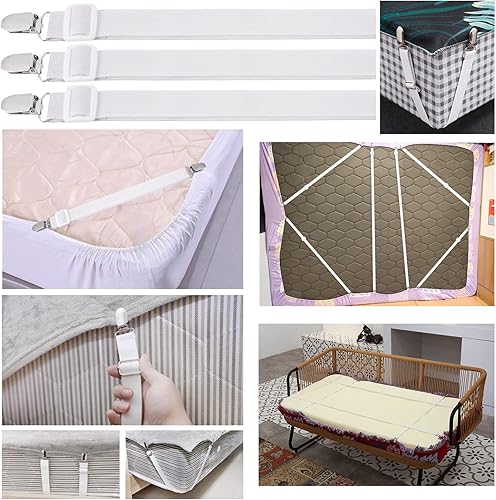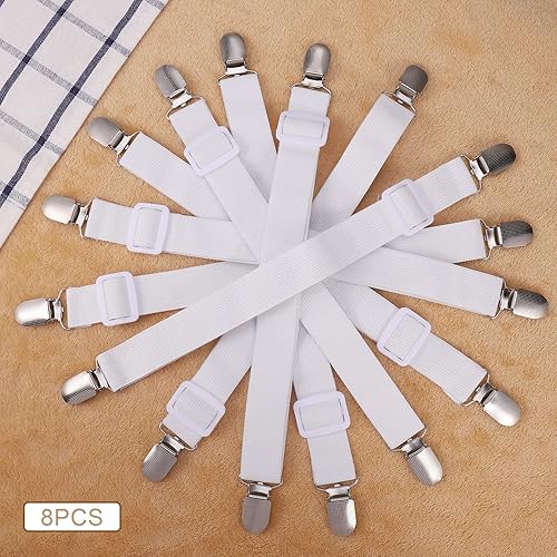 Huiguli Tendeur de Linge de lit 8 pièces réglable, tendeur de Linge de lit avec Clip métallique tendeur de Linge de lit élastique Blanc, Couvre - lit de tendeur de Linge de lit, pour draps, Matelas