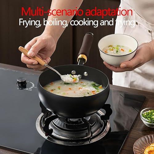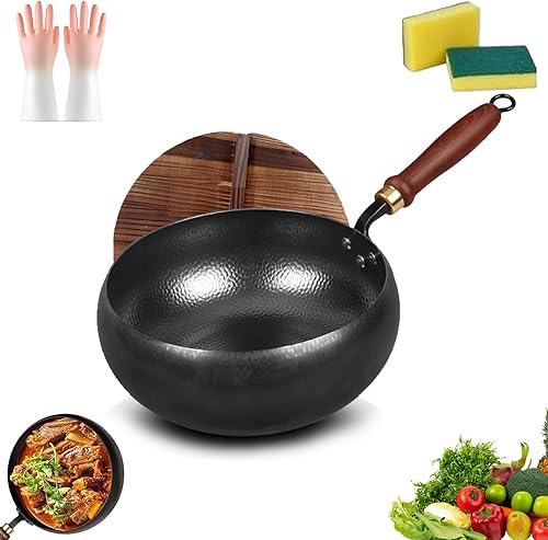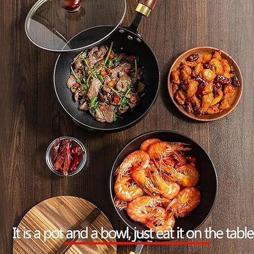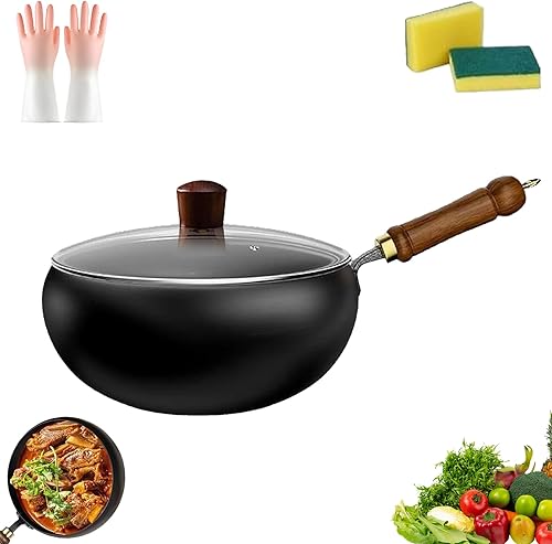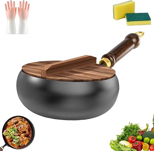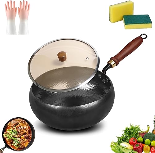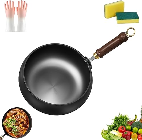 Poêle japonaise en fer forgé faite à la main sans revêtement anti-adhésif en fer pur, poêle à repasser forgée avec couvercle, spatule en acier inoxydable pour la cuisine, la friture (28 cm sans