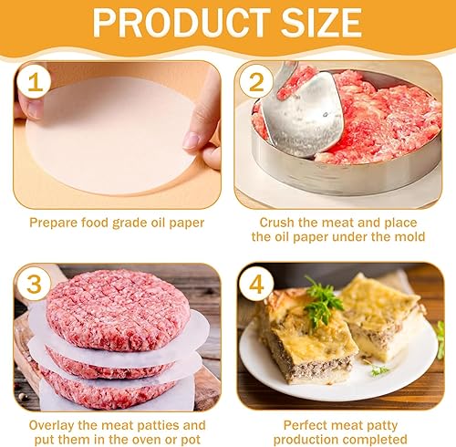 Lotbun 500 Pièces Disques à Burger,Papier Cuisson Rond, Papier Steak Haché,Papier Cuisson, Papier AntiadhéSif,Pour Presse Burger,Galettes Hamburger (13CM)