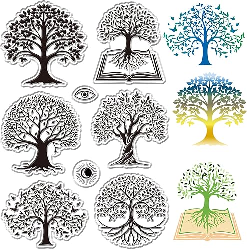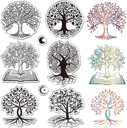 craspire Tampons en Caoutchouc Transparents Arbre de Vie Lune Vintage Réutilisables en Silicone Transparent pour Bricolage, Scrapbooking, Journal, Fabrication de Cartes, Décoration, Album Photo