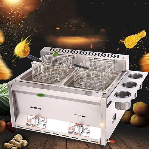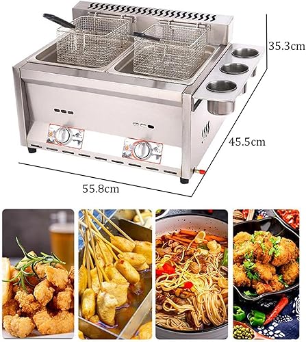Generic Friteuse à puce à gaz 16 l en acier inoxydable de qualité alimentaire Allumage électronique par impulsion Antidérapant Économie d'énergie Nettoyage facile TE-5641