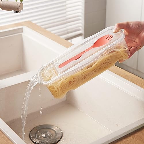 EOIMS Petit cuiseur à pâtes avec passoire, cuiseur à spaghetti, nouilles avec cuillère et couvercle, bateau à pâtes au micro-ondes pour dortoir, cuisine, bureau sans BPA