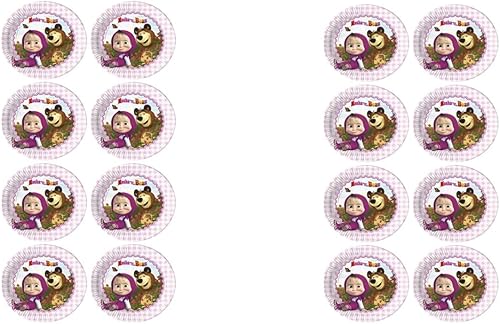 ALMACENESADAN -4747, Pack Masha et l'ours composé de 16 assiettes en carton de 23 cm, idéal pour fêtes et anniversaires, multicolore (8435510347475)