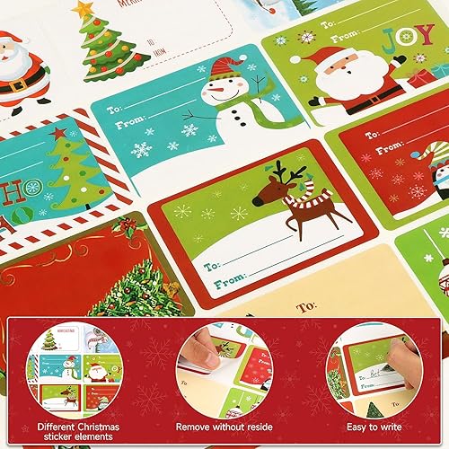 OWill Etiquette Cadeau Noel 144PCS, Etiquettes Cadeaux Noel, Étiquette Cadeau Noel, Étiquettes Cadeaux Noel, Etiquettes Noel pour les Femmes, Les Hommes, Les Enfants
