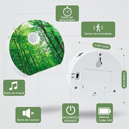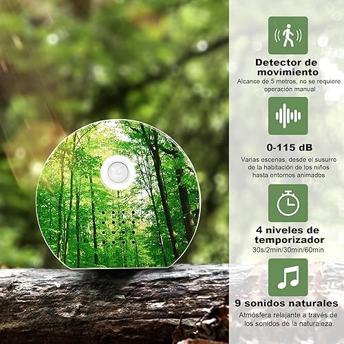 PHYSEN Boîte détecteur de Mouvement avec Chants d'oiseaux, Motif de forêt, boîte avec Sons de la Nature et minuterie, 9 Chants d'oiseaux avec Source de la forêt, pour Toilette ou Spa