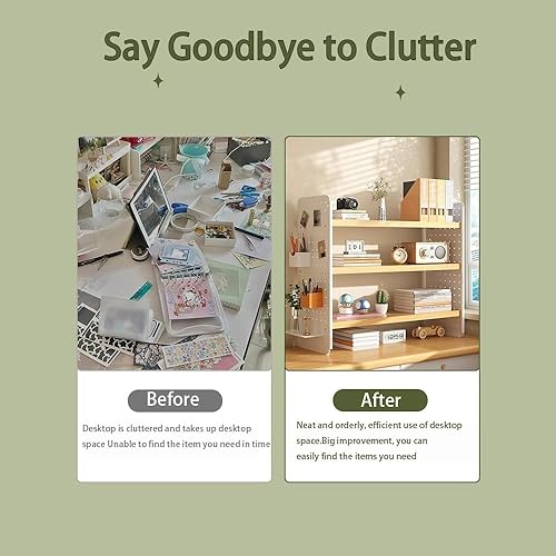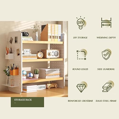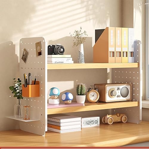 Treesunshine Bibliothèque de Bureau Avec étagères à Panneaux Perforés, DIY étagère de Rangement Multifonction Pour Ordinateur (2 Niveaux, 50 cm)