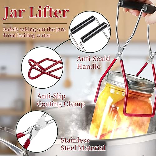 4 Pièces Kit de mise en conserve, Kit de Lève-bocal en Acier Inoxydable, Magnétique Couvercle Bocal Clé, Pinces à Bocaux Pour La Mise En Conserve Kit D'outils