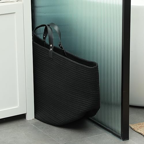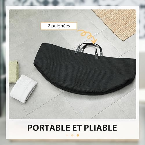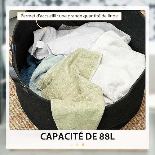 HOMCOM Panier à linge 36L, corbeille à linge pliable en coton, avec poignées, Ø 56 x 35,5 cm, crème