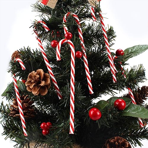 12 Pièces Canne de Bonbons Plastique, Suspendus Candy Cane de Noël, Décorations Sucres d'Orge, Ornements pour Sapin Avec Corde Dorée