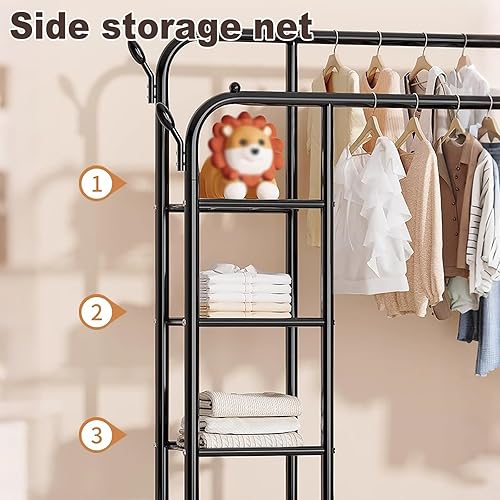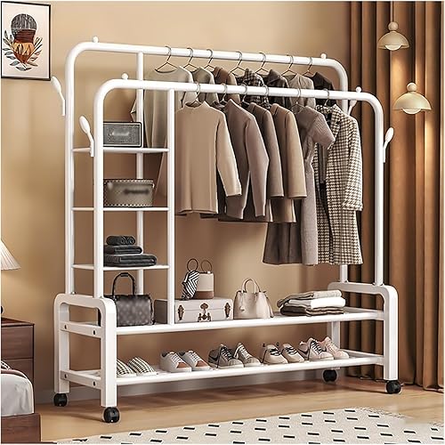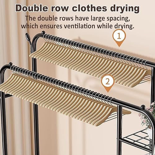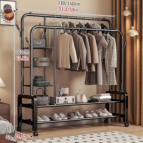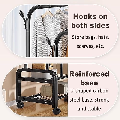 ZzERTE Portant À Vêtements Sur Roulette, Porte-manteaux, Penderie, Avec Double Tringle Et Étagère De Rangement, Chambre, Buanderie(Black,130cm/51.2in)