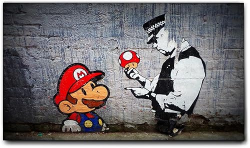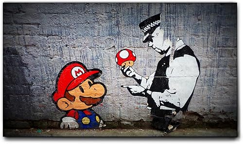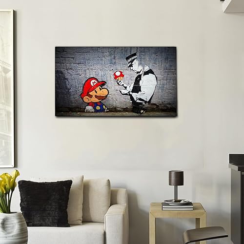 Giallobus - CADRE - IMPRESSION SUR TOILE CANVAS - BANKSY - SUPERMARIO - 80 x 140 CM