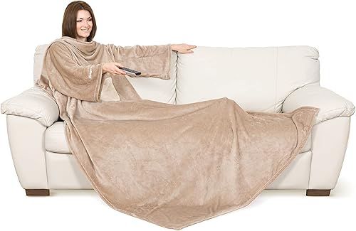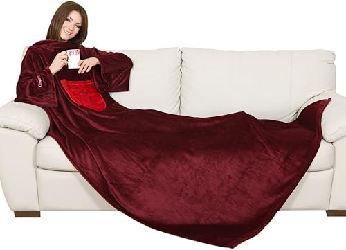 Kanguru Deluxe Midnight, Plaid Polaire à manches et poche Kangourou, Super Doux, cocooning plaid canape grande taille, Couverture polaire avec manches, Adultes, Couleur Bleu, 140 x 210 cm