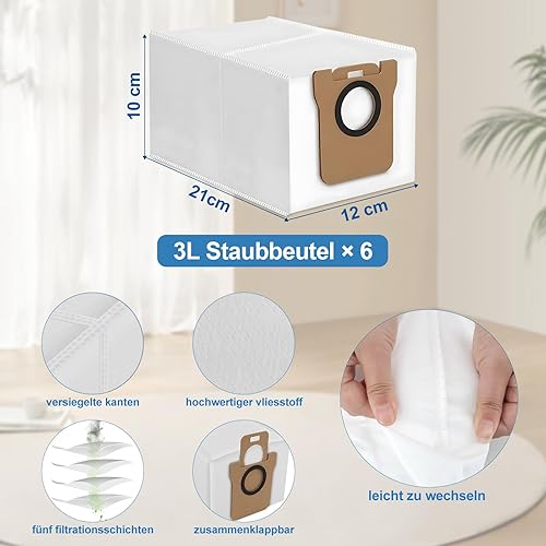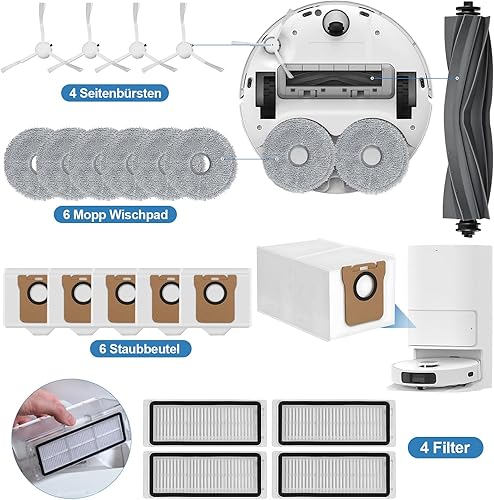 Estelife Kit d'accessoires pour Dreame L10s Ultra/L10 Ultra, 6 serpillères, 6 sacs à poussière, 4 brosses latérales, 2 filtres, 1 brosse principale, pièces de rechange pour robot aspirateur