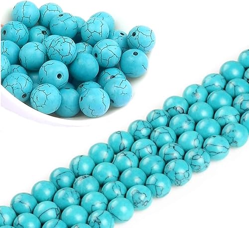 Perlin 1 fil de perles rondes turquoise de 8 mm en pierre semi-précieuse, pierres précieuses, pour le bricolage, la fabrication de colliers et de loisirs créatifs G42