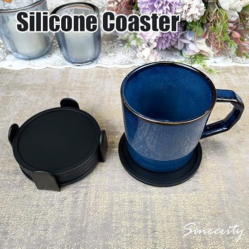 Lot de 6 sous-verres en silicone, tasse dessous de verre pour boissons, coussin en verre résistant à la chaleur, dessous de verre pour table, bureau, cuisine, bureau (gris)