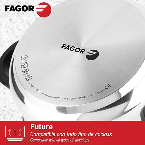 Fagor Future - Autocuiseur 4+6L + Panier Perforé, Acier Inoxydable 18/10, Cuisson Rapide et Efficace, Compatible Avec Induction, Cuisson à la Vapeur