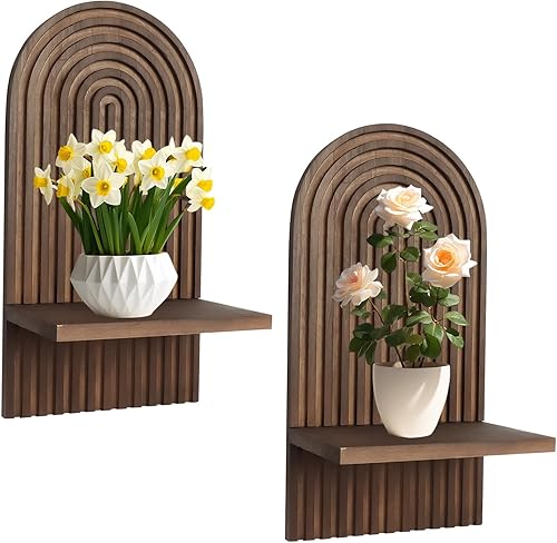 Yallmie Lot De 2 Etagere Boheme, Etagere Murale Bois Boheme Arc en Ciel éTagèRes Flottantes Suspendues éTagèRes DéCoration Chambre BohèMe Moderne Support Mural en Bois BohèMe Style éTagèRe