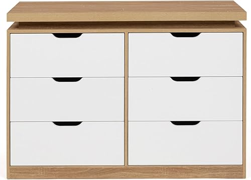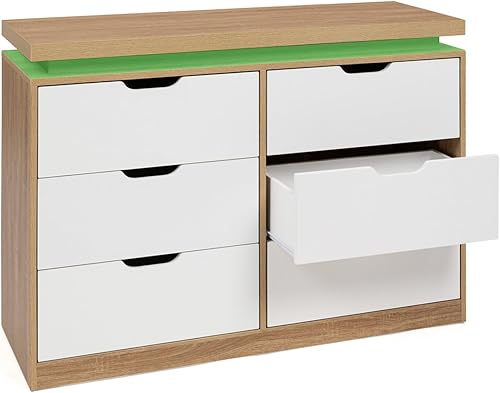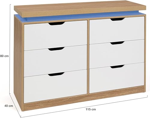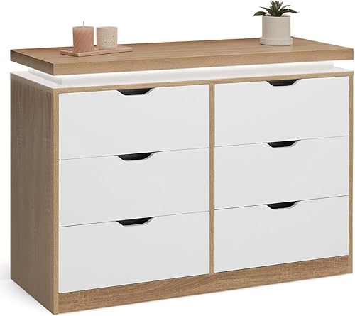 IDMarket - Commode 6 tiroirs Luna à LEDs 115 cm Blanc et Effet Bois