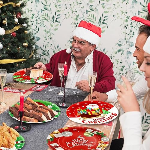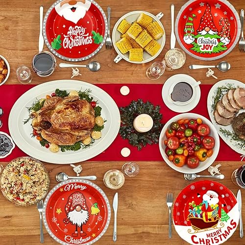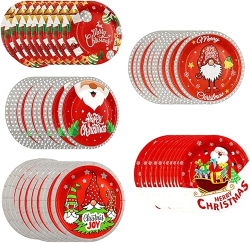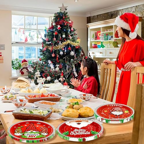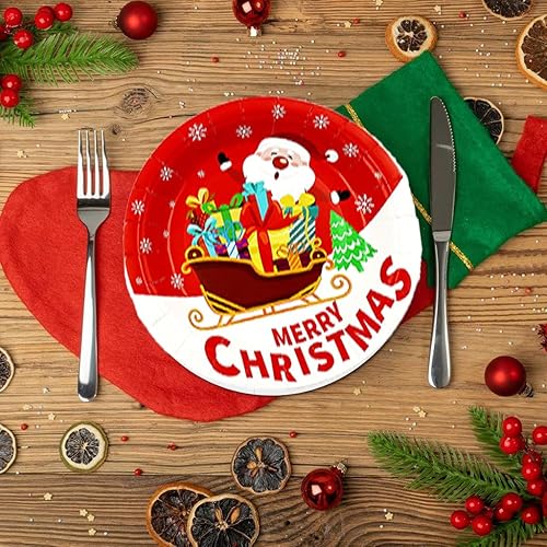 HAOYUNLAI 50pcs Assiette Pour Fête De Noël, Assiettes De Noël Vaisselle Décoration De Fête De Noël, Assiette Noel, Motif Père Noël, Fête Vaisselle En Papier Pour Jour De Noël Dîners Anniversaire