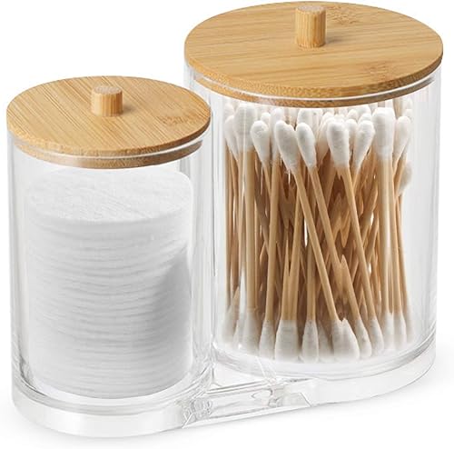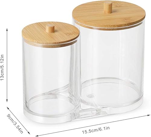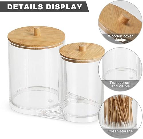 Hwtcjx Porte Coton Tige, Distributeur Coton, Boite a Coton, Fabriqué en Matériau PS, avec Couvercle en Bois, étanche à la poussière et à lhumidité, pour Salon, Chambre Coucher, Salle de Bain (A)