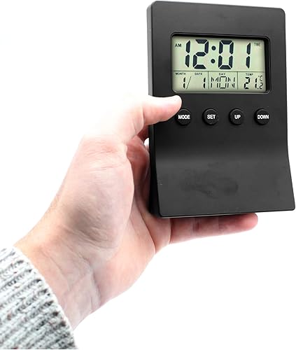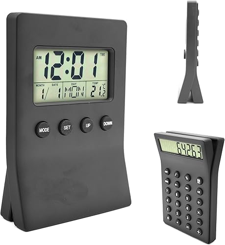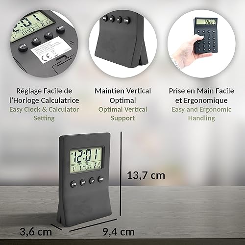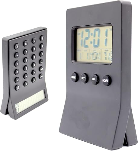 Fishtec - Horloge Numérique Calculatrice 2 en 1 - Affiche la Température, l'Heure, la Date - Fonction Réveil Disponible - Alimentation : 2 Piles Bouton AG13 (incluses) - 13.7 x 9.4 x 3.6 cm