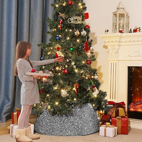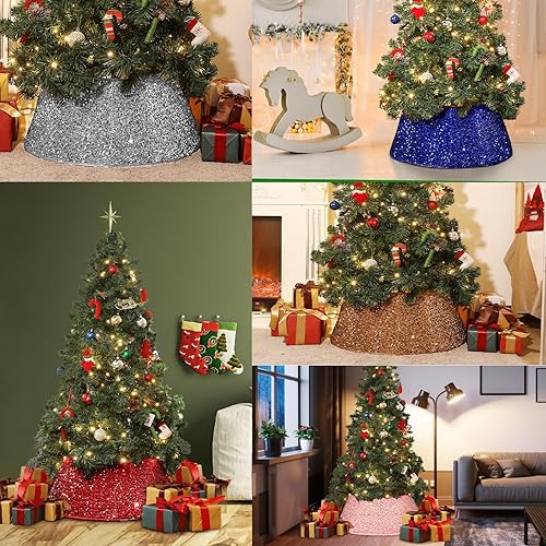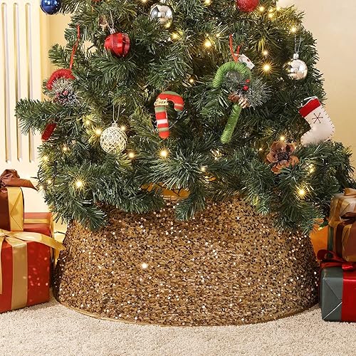 Lewondr Jupe de Sapin de Noël Décorative avec Paillettes - Couvre-Pied Pliable d'Arbre, Décoration Intérieur & Extérieur pour Maison, Salon, Jardin - Or