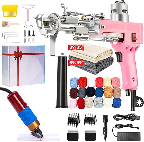 BESGEER Rug Tufting Gun Set with Trimmer, Tufting Machine Cut Pile and Loop Pile Start Kit, Tufting Kit Complet, Pistolet Tufting,Pistolet Touffeter, Kit Pistolet à Touffeter avec Tondeuse